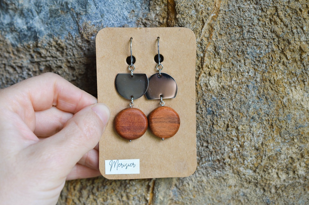 Boucles d’oreilles asymétriques merisier